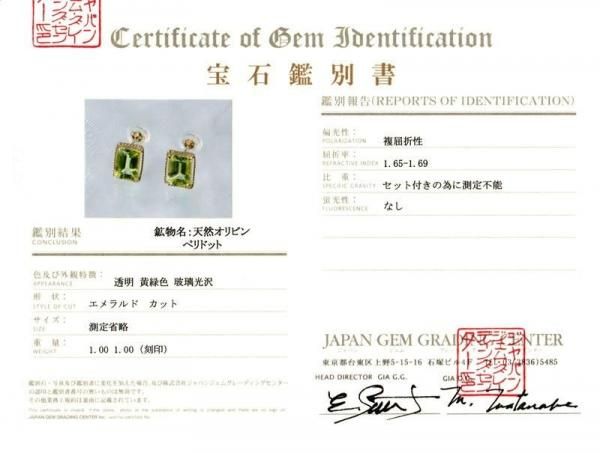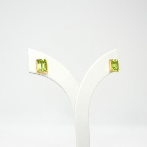 エメラルドカットペリドットピアス PE 1.00ct 1.00ct K18YG GGSJ鑑別書付