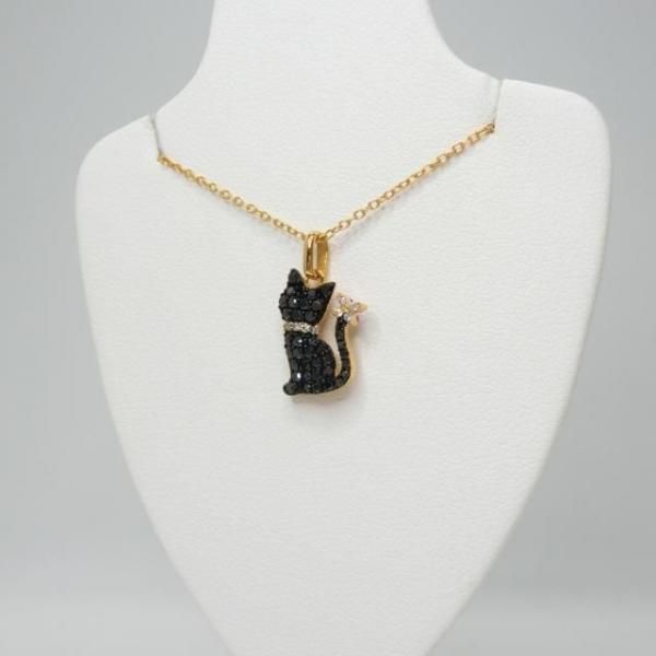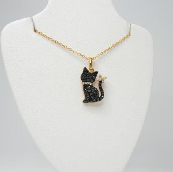 黒猫のシルエットには、漆黒の輝きを秘めたブラックダイヤモンドをセッティング。