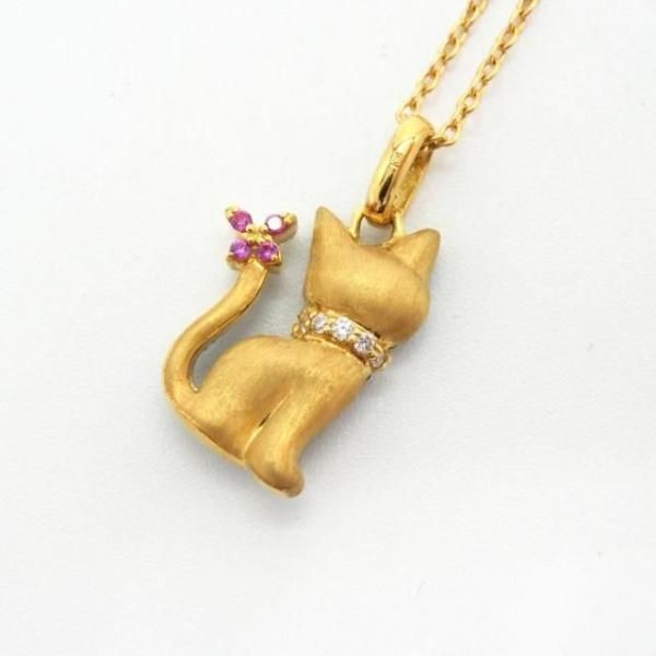 猫モチーフ ブラックダイヤモンド ピンクサファイア リバーシブルネックレス BLD 0.35ct D 0.06ct PS 0.02ct 45cm K18YG